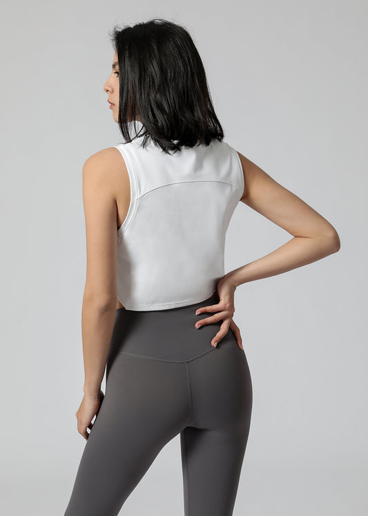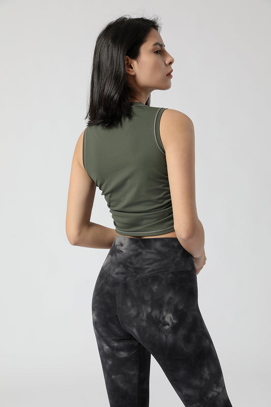 新款运动背心女 瑜伽运动背心 侧腰束折露脐健身背心女2095